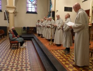 Het afscheid van John de Vries als bestuurslid van Levend Vroomshoop is niet onopgemerkt voorbijgegaan. Bij de Mariakapel aan de Geerdijk werden John en zijn vrouw Jenny verrast door een eerbiedwaardige processie van zes monniken en twee nonnen. Daarvoor hadden de bestuursleden Petro Alferink, Betsie Bosch, Bert Dorresteijn, Jan Cees Kaas, Thea Kroese, John Mulder, Hans Nieboer en Warner Warringa van Levend Vroomshoop zich in monnikspijen gehuld.